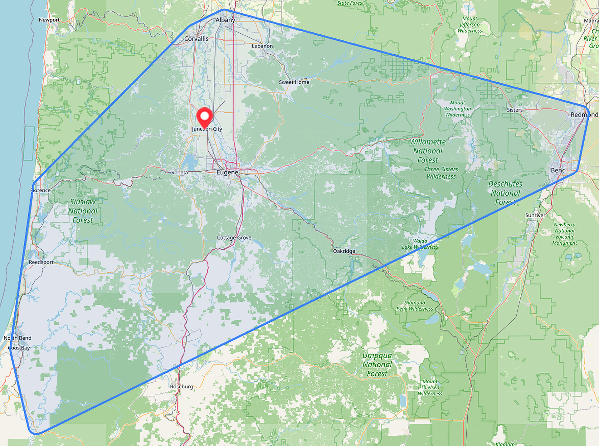 Junction City, OR, and all of the Eugene Metro
